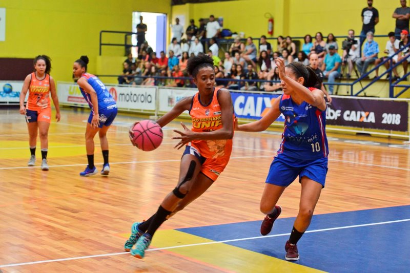 Mesmo com um elenco menos experiente, as guerreiras são-bernardenses foram à luta e fizeram um jogo em igualdade de condições, demonstrando a qualidade do trabalho que vem sendo realizado pelo técnico Márcio Bellicieri. O primeiro tempo foi marcado pelo equilíbrio, com o time da casa levando vantagem (17 a 19) e o visitante reagindo prontamente no segundo e passando a comandar o marcador (19 a 15).