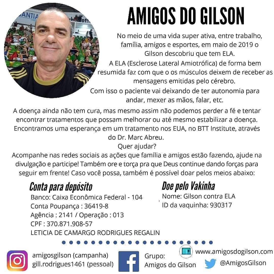 A Liga Regional de Basquete Centro Oeste Paulista (LBC) aderiu à campanha “Amigos do Gilson”, que visa angariar fundos para Gilson Rodrigues, nome importante do basquete na região, que foi diagnosticado com enfermidade ELA, a Esclerose Lateral Amiotrófica, em maio de 2019.